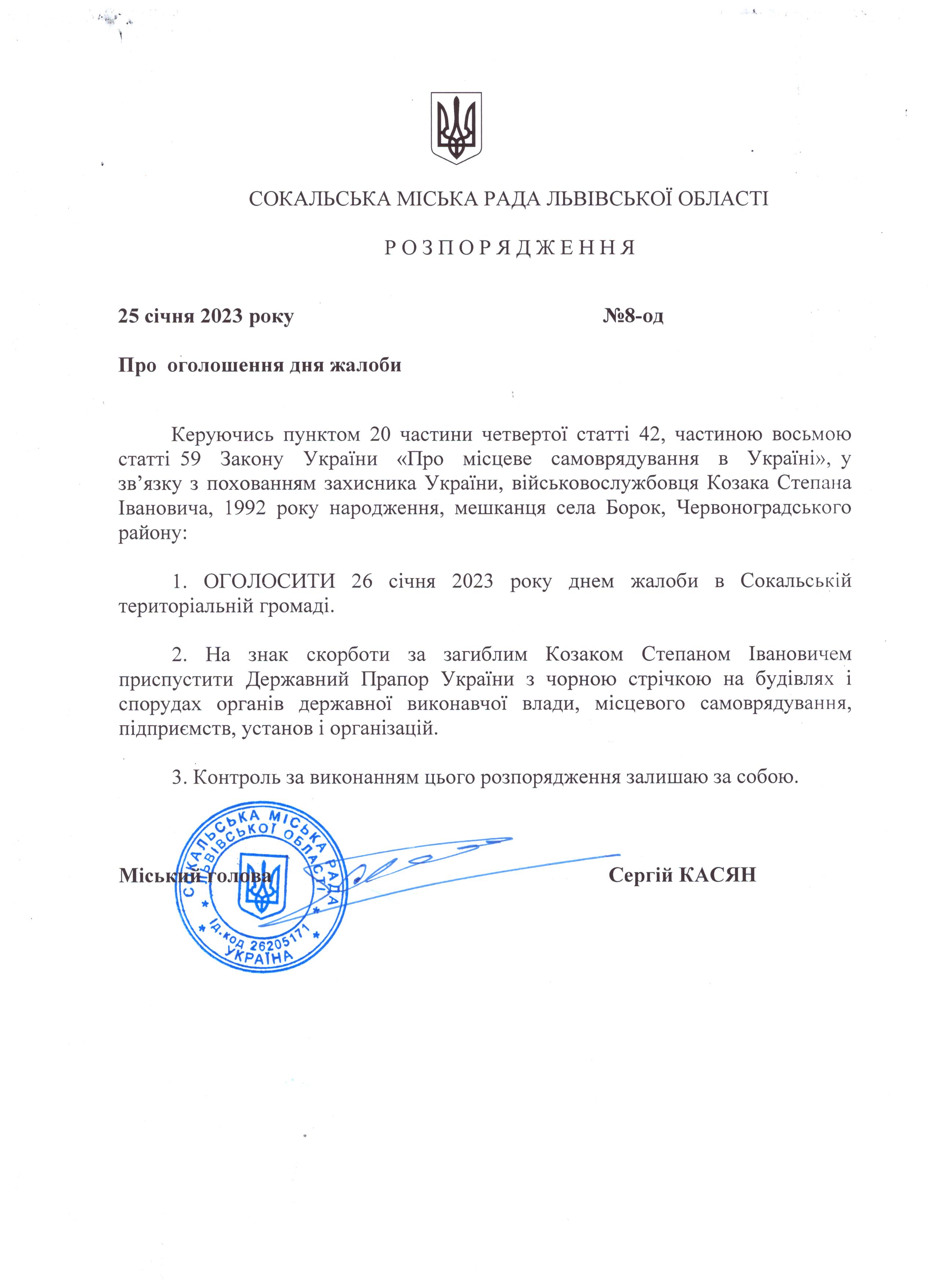 Розпорядження про День жалоби